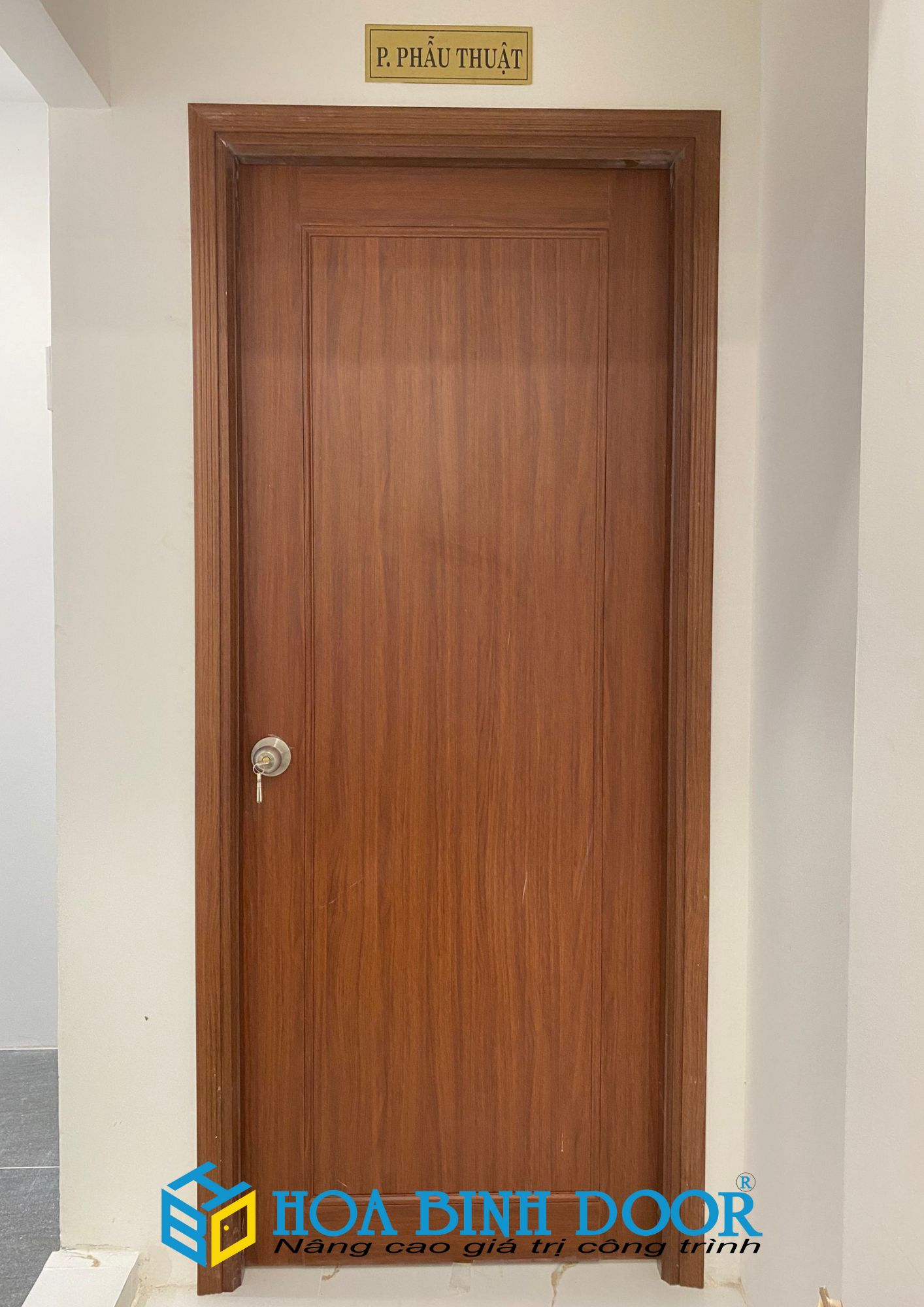 – Lớp ngoài cùng cánh cửa được phủ lên một lớp da giả gỗ với công nghệ dán hiện đại, lớp da đó cũng làm từ nhựa chống thấm nước. Sau đó đem cắt thành một cánh cửa theo kích thước chuẩn.