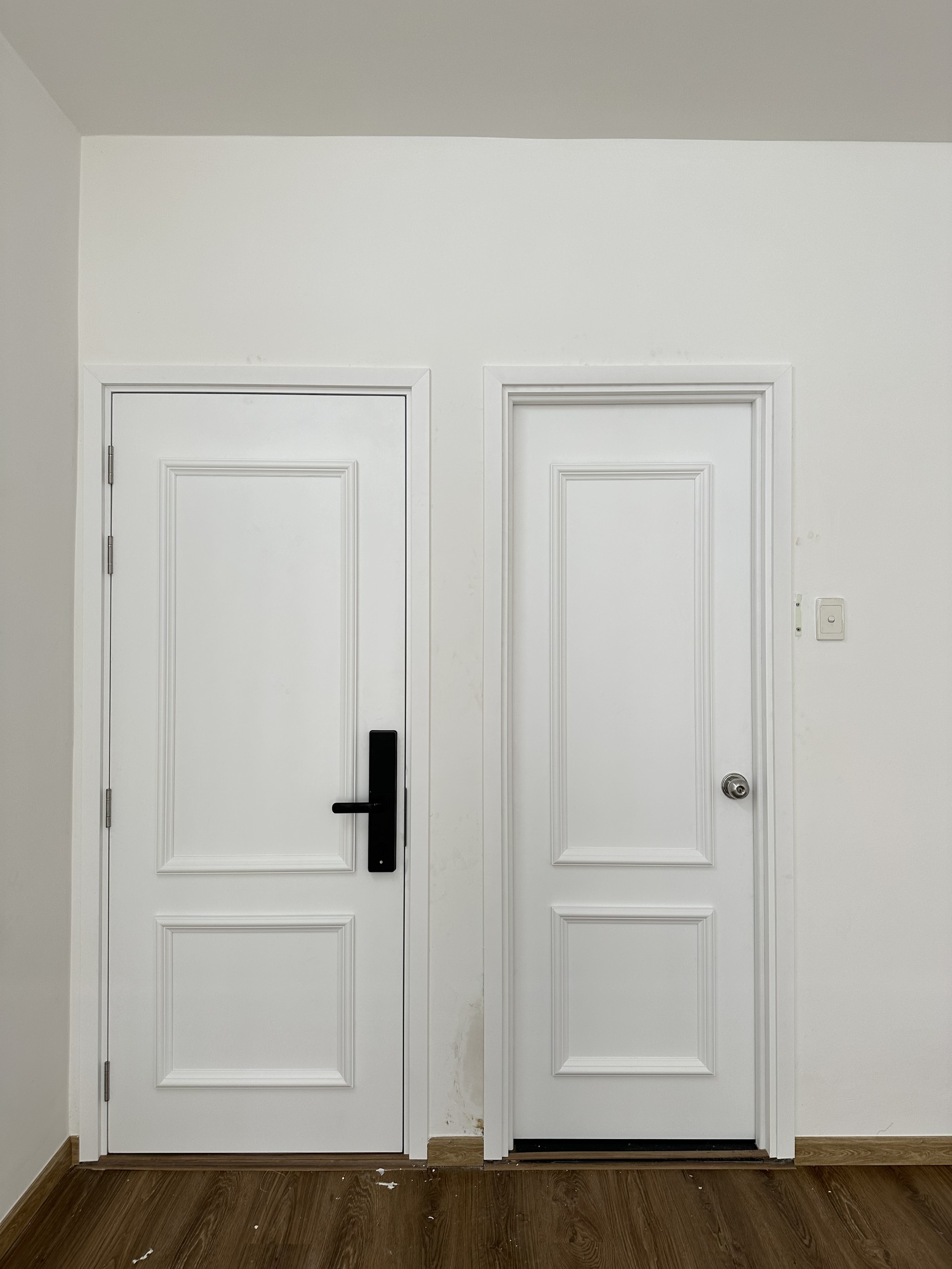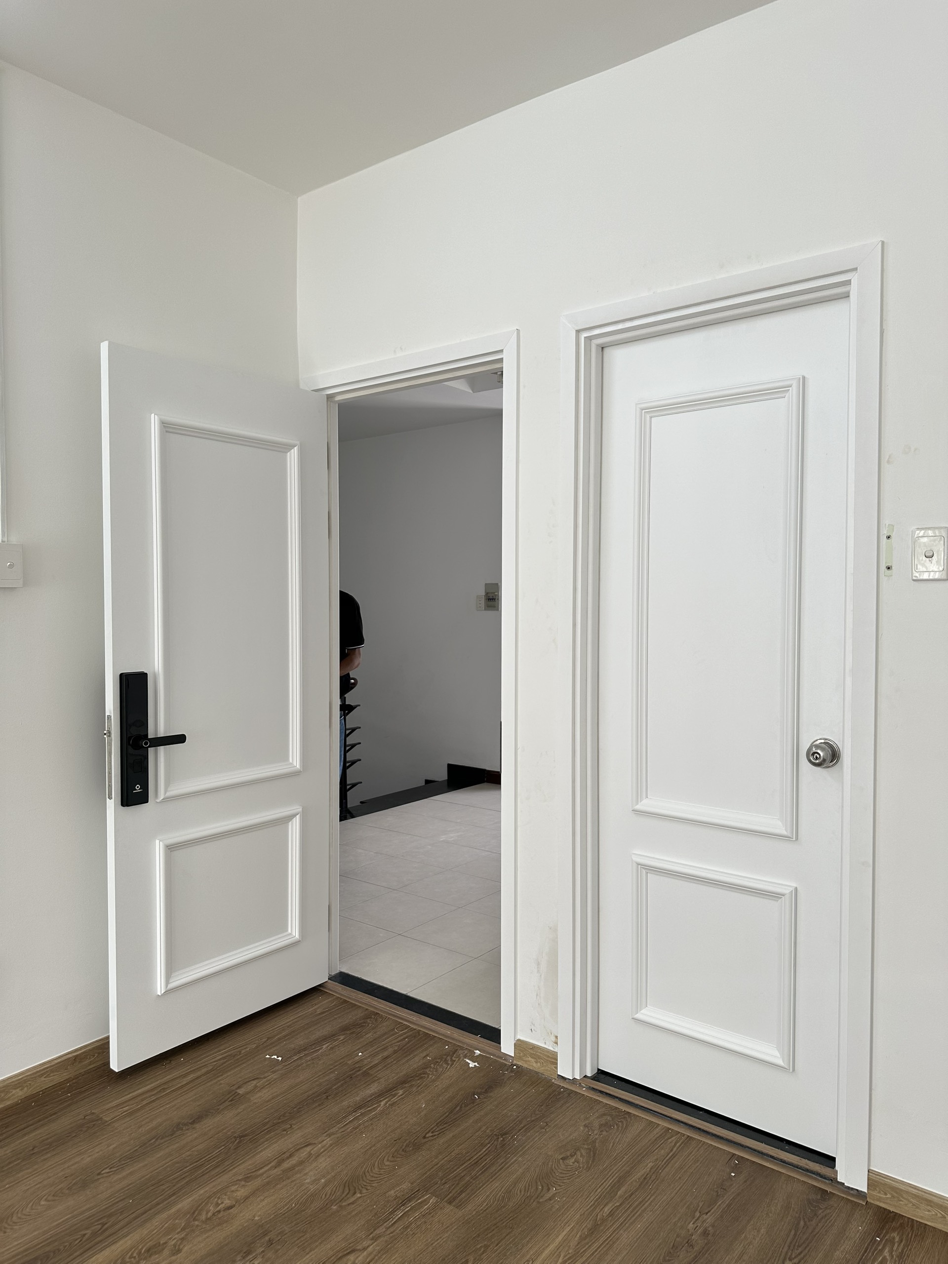 - Kích thước ô chờ hoàn thiện cửa nhựa gỗ composite: 910x2210mm