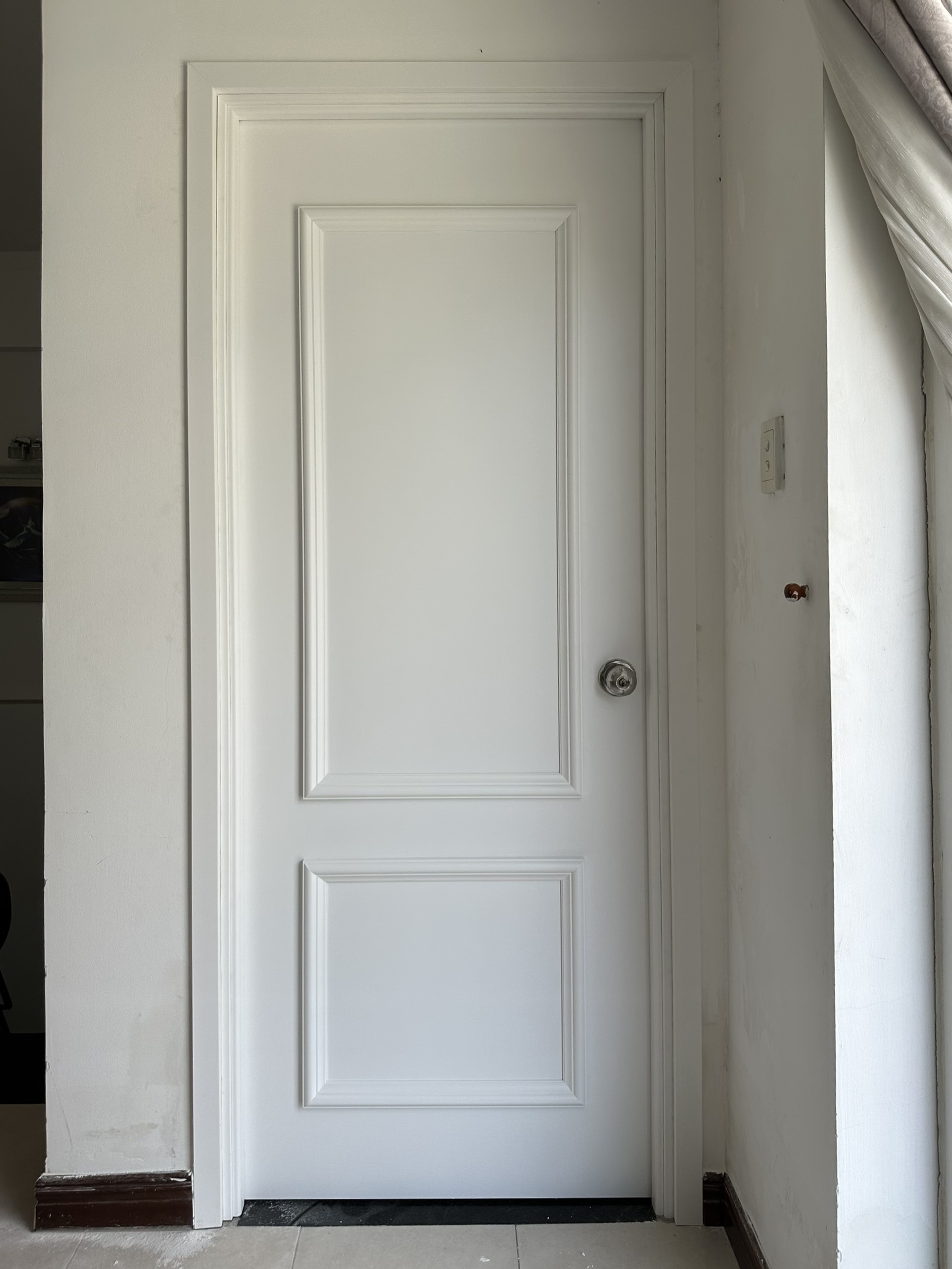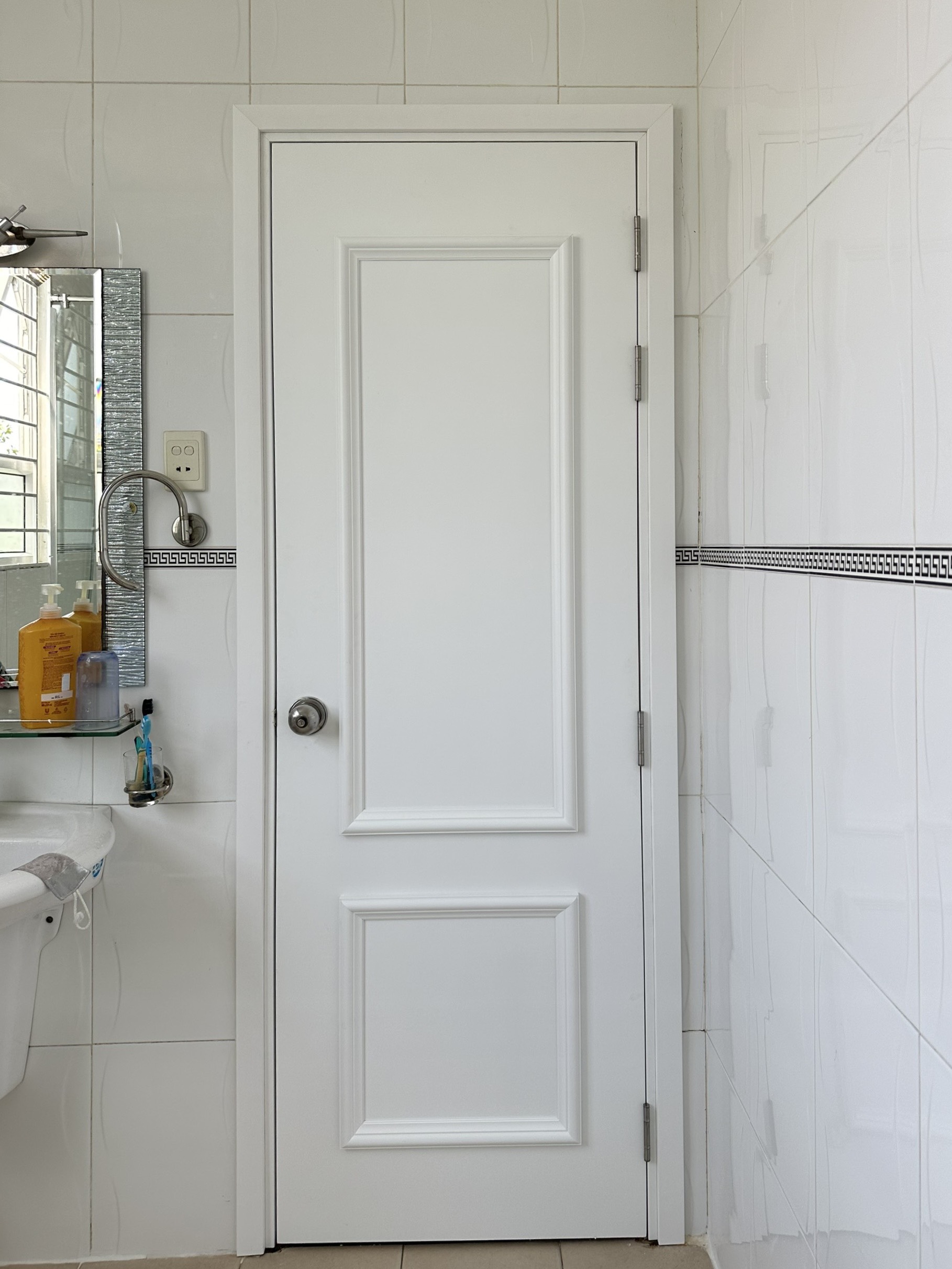 - Vì là giả gỗ nên nếu tiếp xúc trực tiếp với ánh nắng mặt trời trong một một thời gian dài sẽ khiến cửa bị phai màu.
